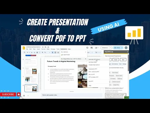 MagicSlides.app is the best AI presentation generation tool which helps you create presentation from any piece of content weather it is pdf, youtube video, or docx file.