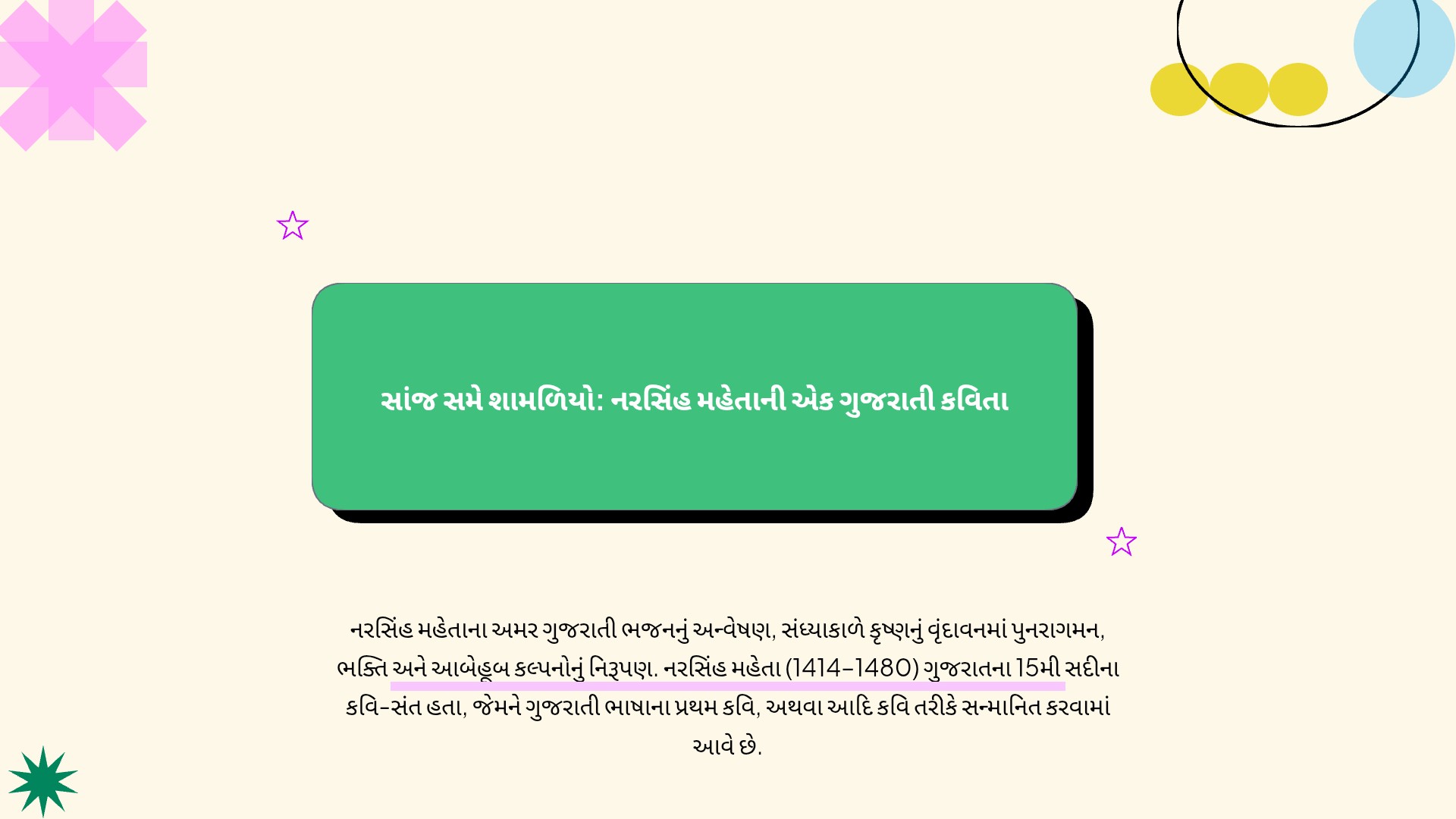 સાંજ સમે શામળિયો: નરસિંહ મહેતાની એક ગુજરાતી કવિતા