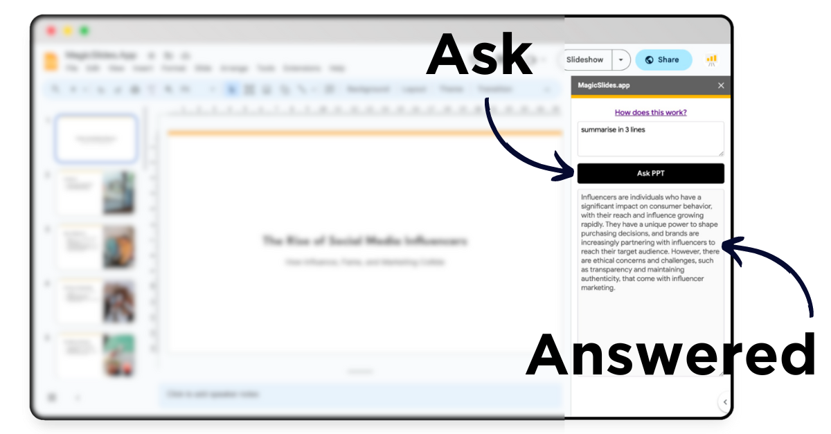 Having difficulty understanding a point in the lesson? Use AskPPT to chat with the presentation and understand the topic better without shuffling through slides multiple times.