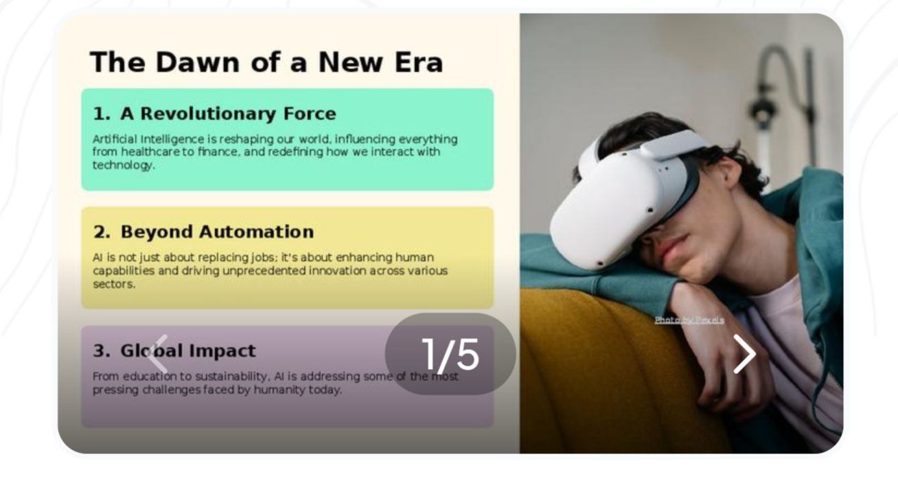 This clean and vibrant template is a great fit for innovative topics. The layout features high-resolution images paired with bold headings and well-organized sections. Light backgrounds and a focus on imagery ensure that the template feels fresh and modern.