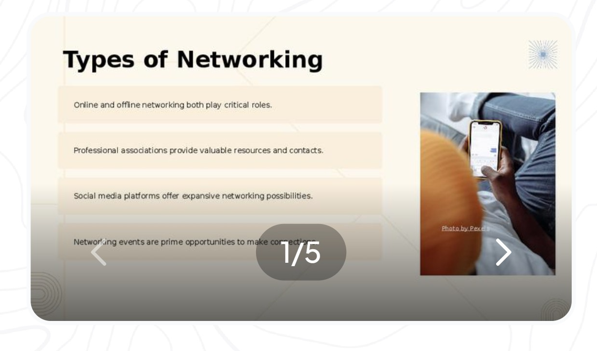Ideal for presentations on networking, communication strategies, and professional connections, this template uses modern, minimalist visuals. Each slide combines a combination of imagery, text blocks, and highlighted sections to create a balanced layout.