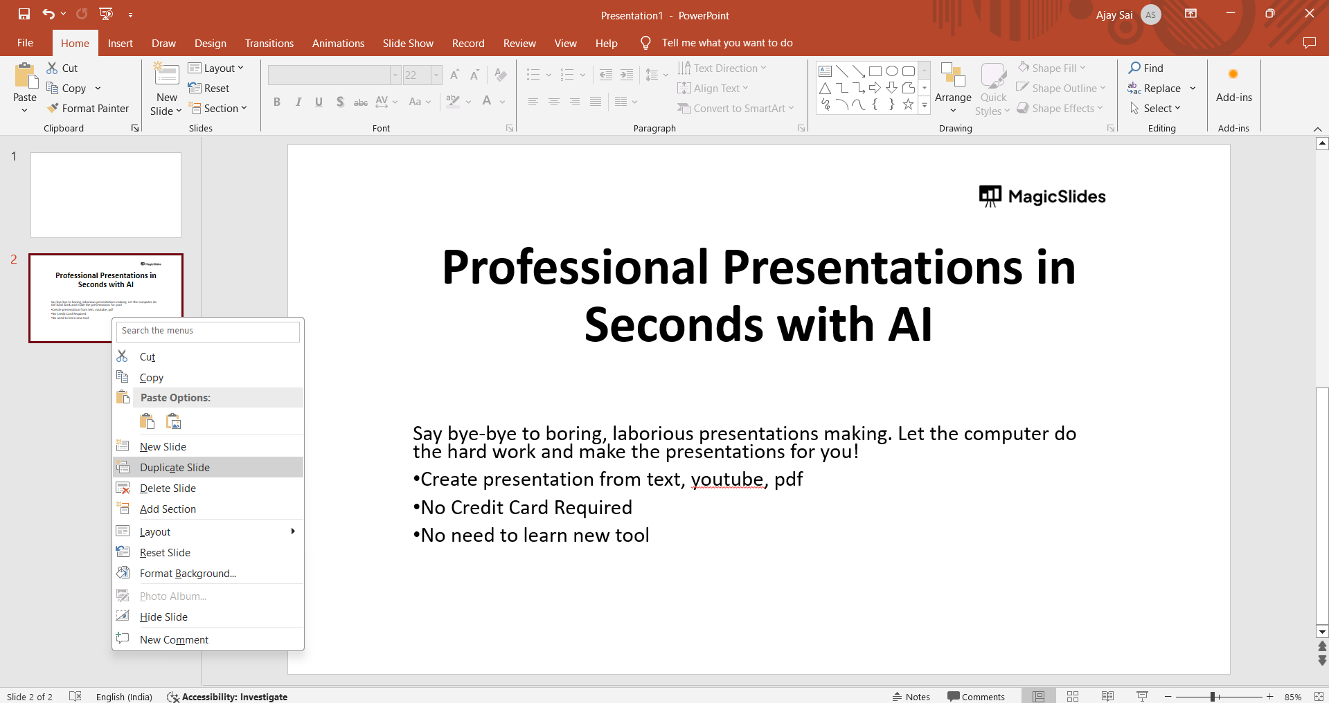 How to duplicate a slide in powerpoint