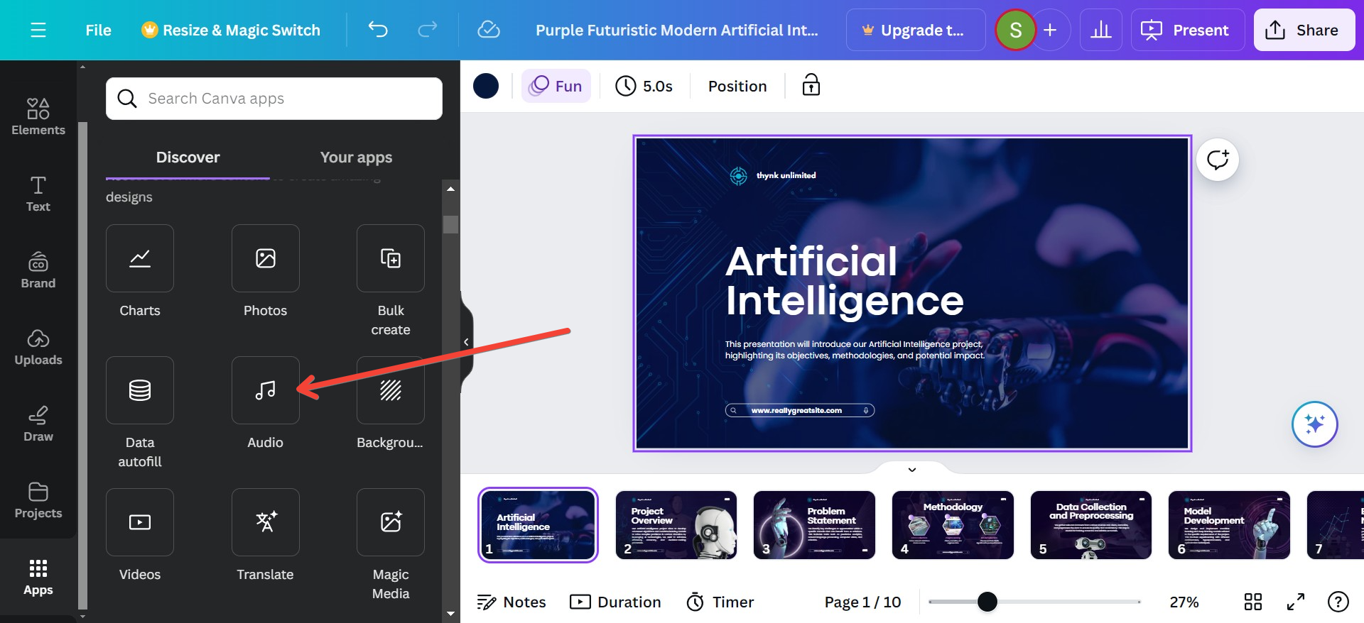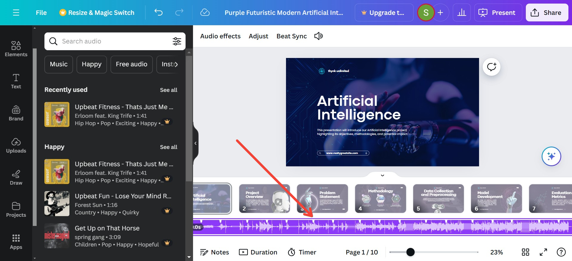 - #Step 3. After upload, drag the audio into your slides. Rest, Canva will handle automatically.