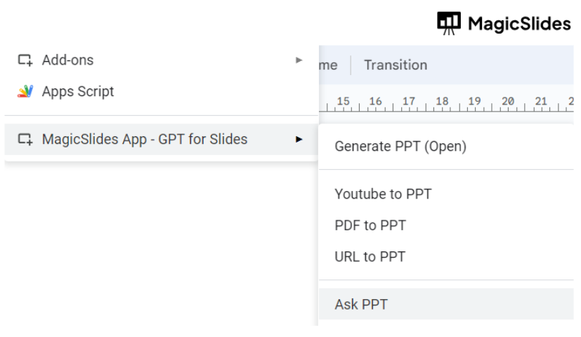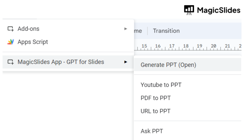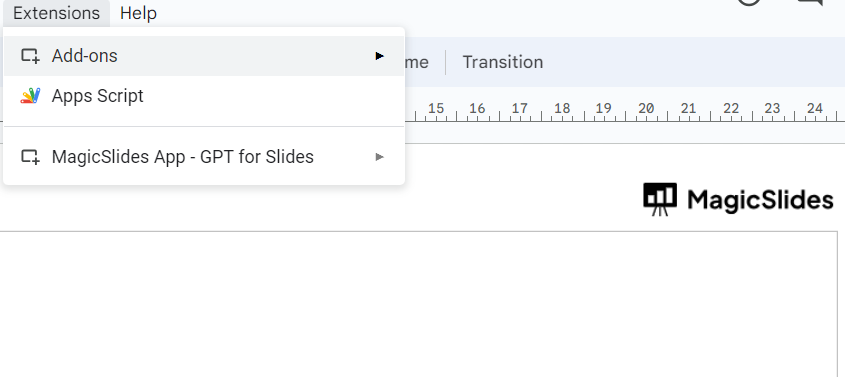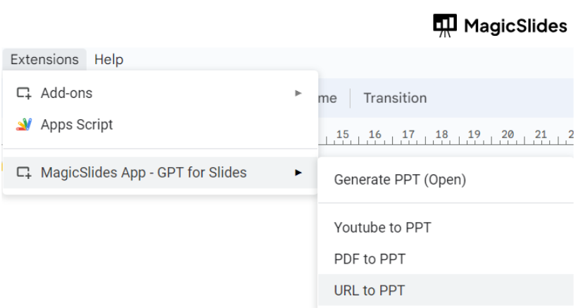 - Click on the MagicSlides extension tab.