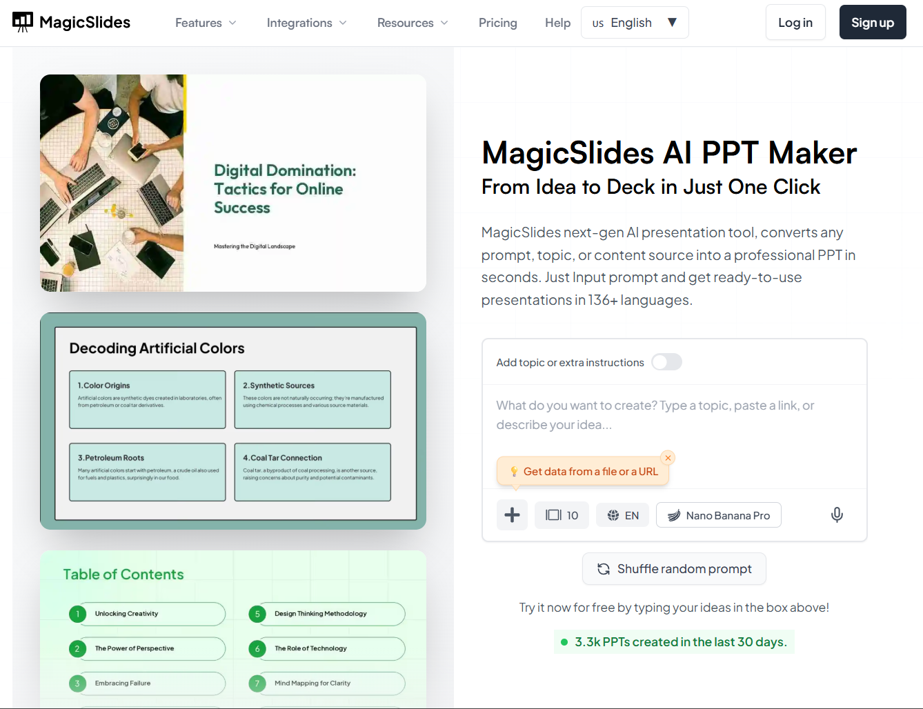 MagicSlides.App is an AI-powered presentation generator that transforms text, notes, articles, scripts, or ideas into ready-to-present slides in seconds.