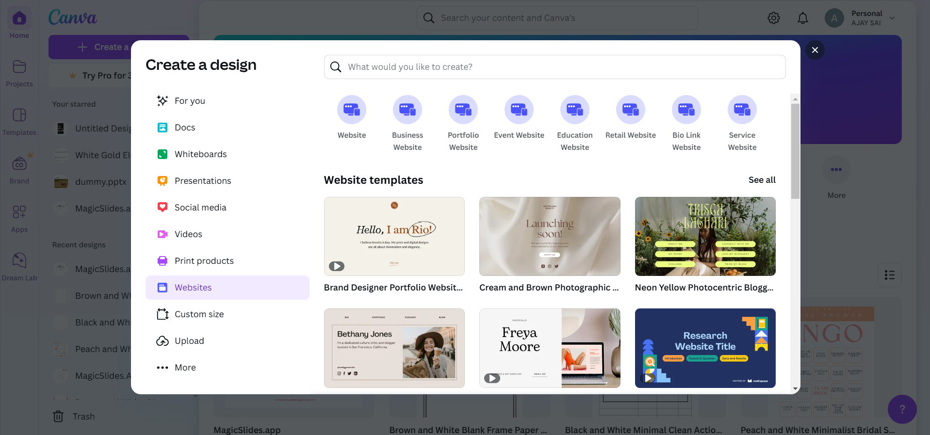 Step 1: Create Your Website in Canva