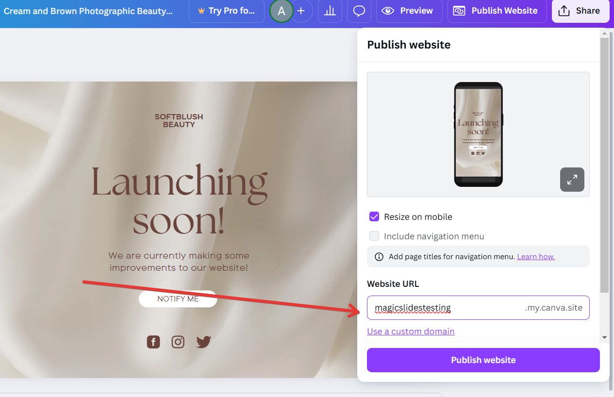 Step 2: Publish Your Canva Website