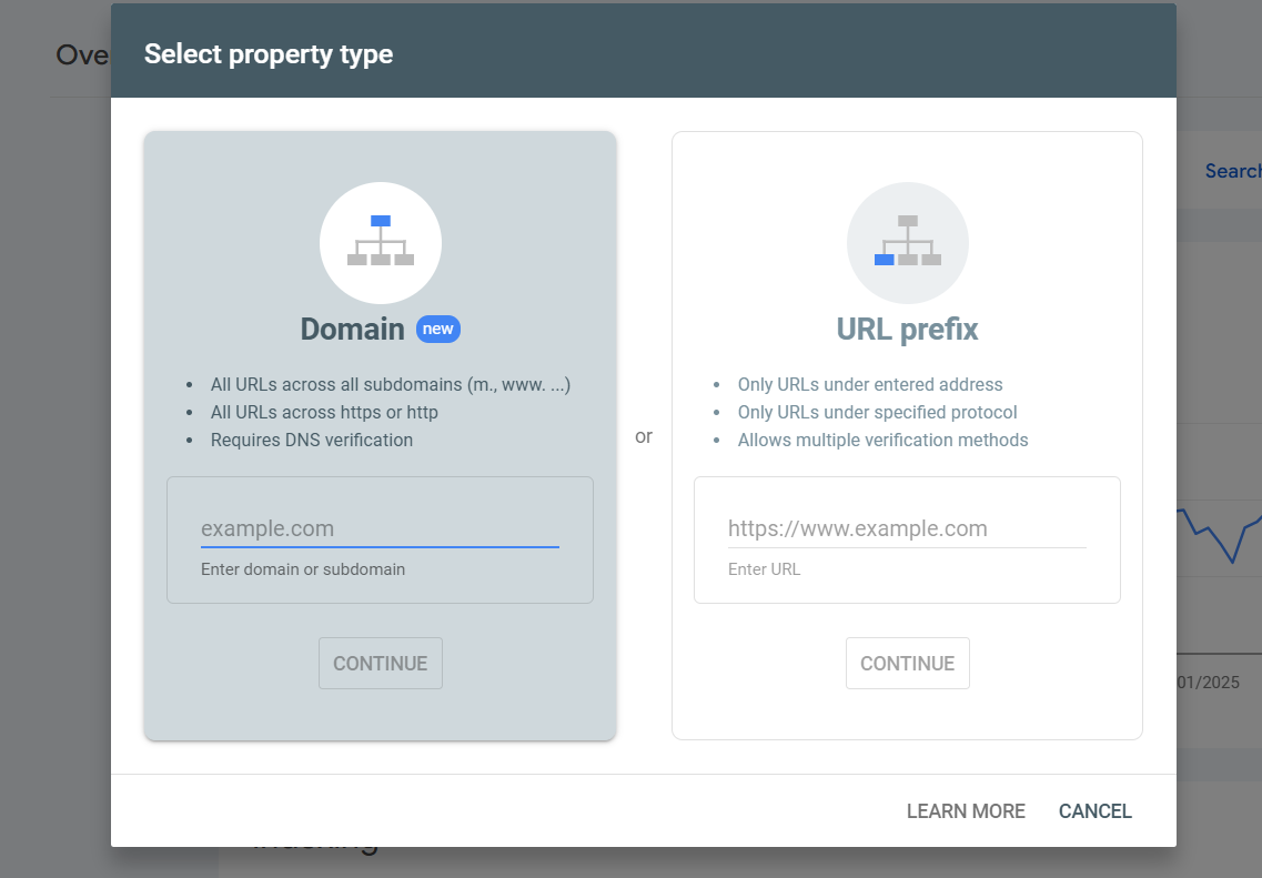 Visit Google Search Console (search.google.com/search-console). Click Start Now and sign in with your Google account.
