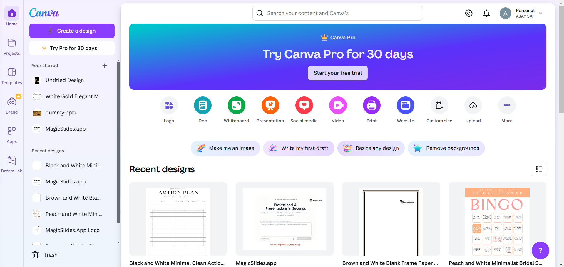 Open Canva on your browser or app. Sign in to your Canva account using your credentials.