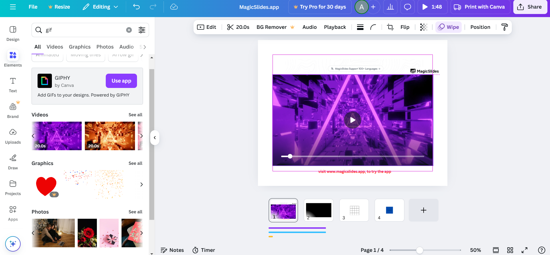 Incorporating looping GIFs into Canva slides is an effective way to add liveliness to your presentations.
