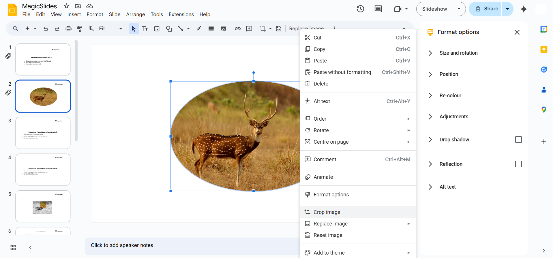 Google Slides has limited options for cutting out objects, but if you want an easier way to create professional slides with perfectly placed elements, try MagicSlides.app. It generates AI-powered presentations with customized layouts in seconds!