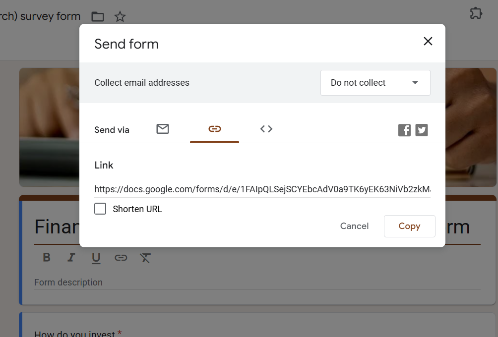If using Google Forms, click Send, then select Link and copy it.