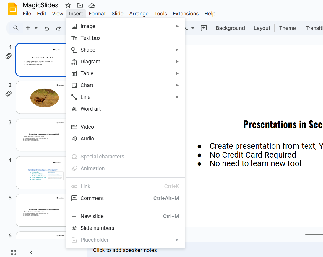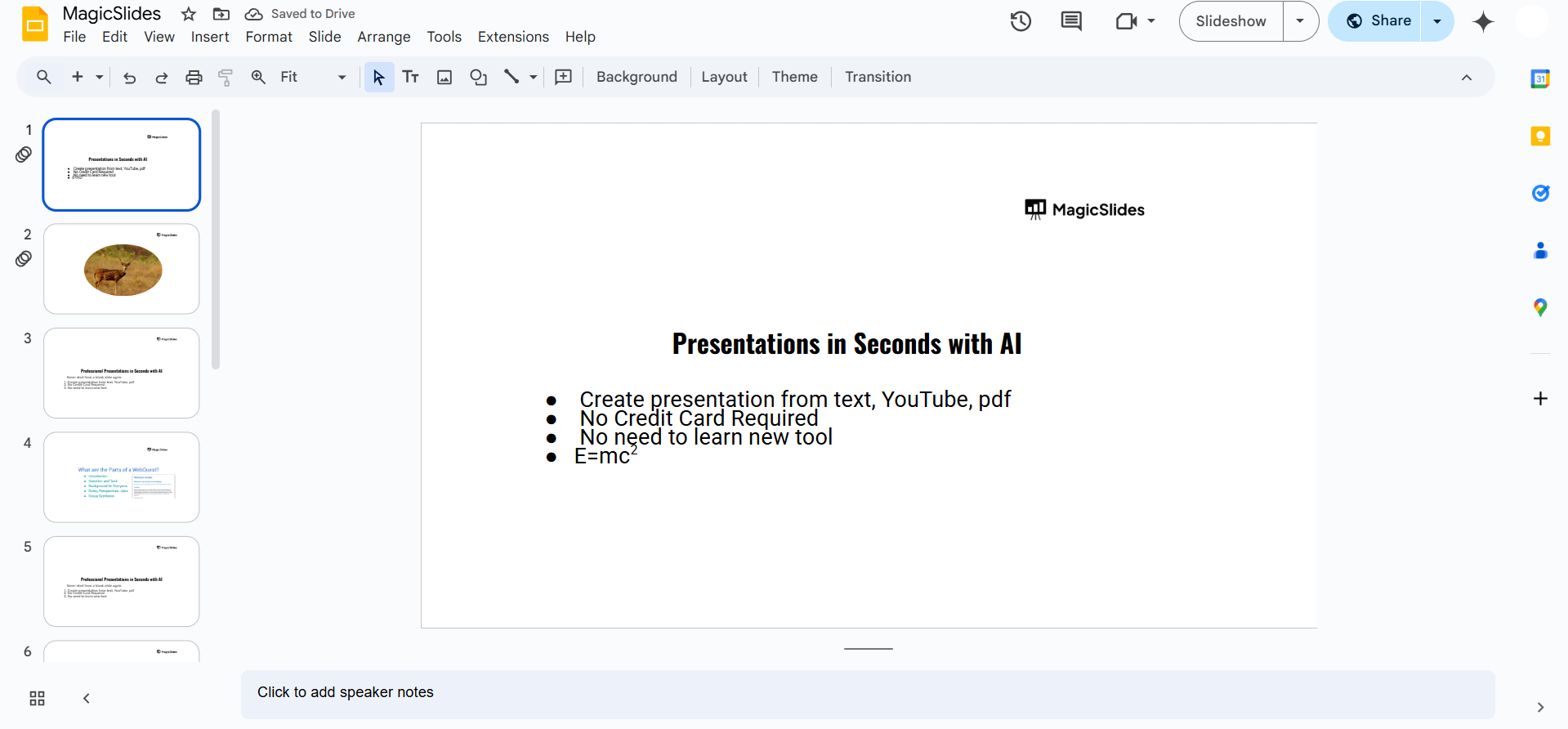 Google Slides doesn’t support formulas directly, but there are workarounds. If you want to streamline your presentation creation, try MagicSlides.app, which generates complete slides from topics, PDFs, or even YouTube videos in seconds!