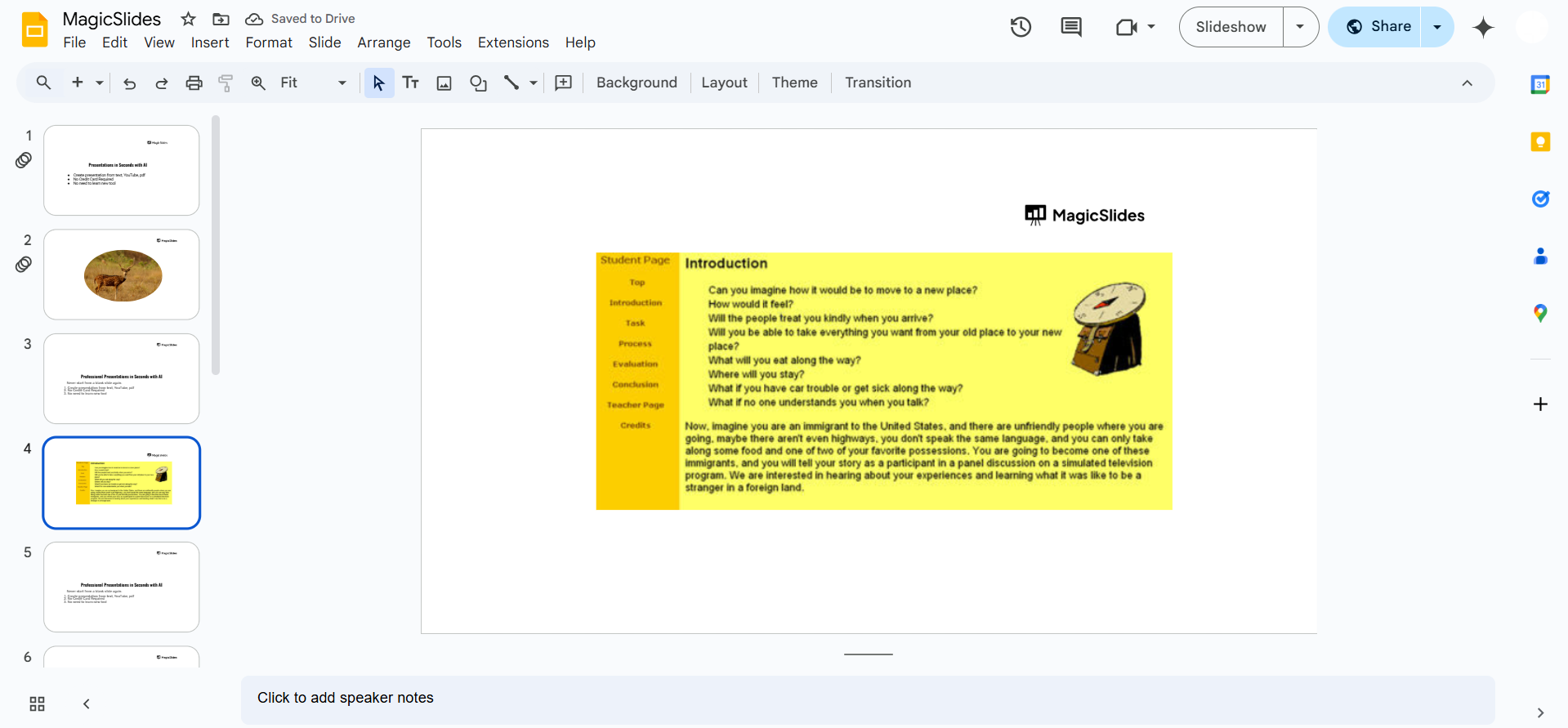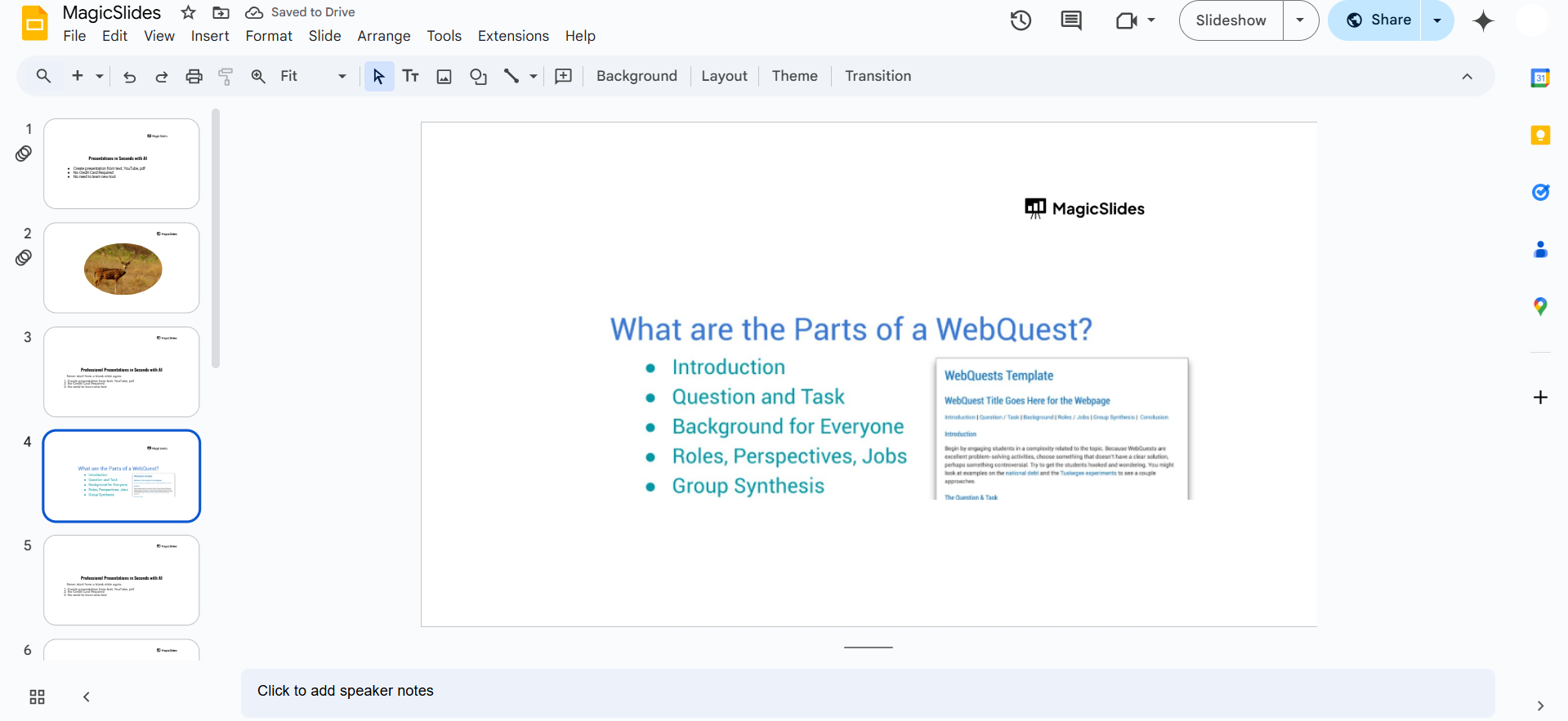 Yes! Google Slides can be a great tool for WebQuests, but if you're looking to create interactive, structured slides quickly, try MagicSlides.app. AI-powered slide creation makes your job easier just enter a topic and get a complete presentation in seconds!