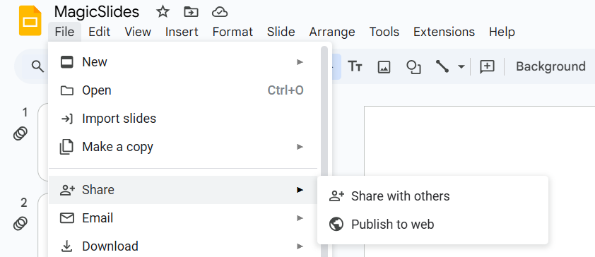Click File > Share to generate a link. Choose the Anyone with the link can view option to ensure accessibility.