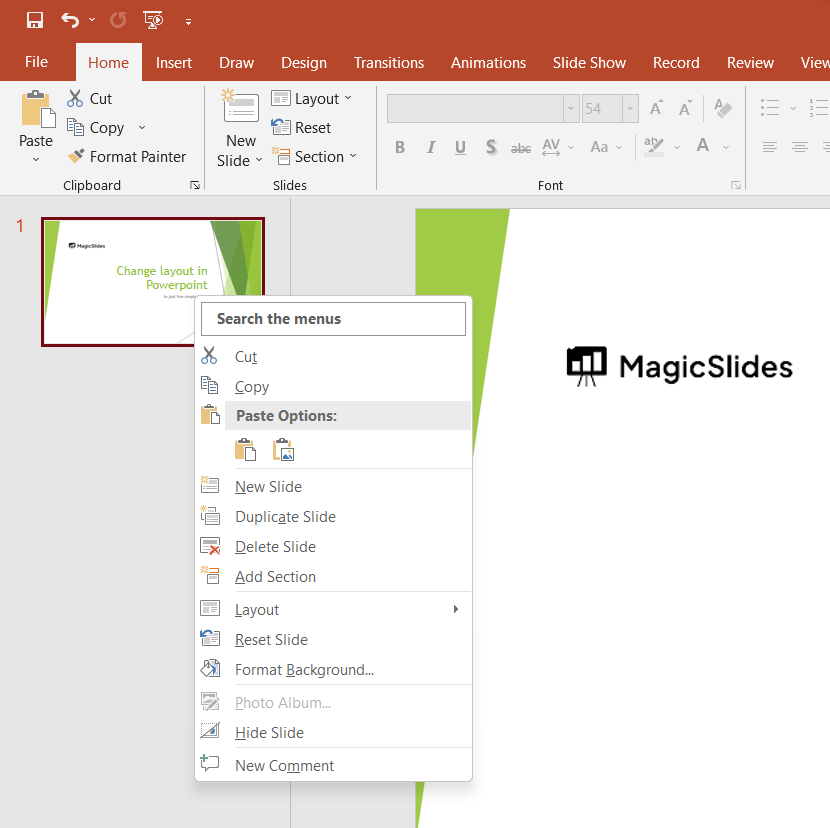 Step 3: Right-click on the selected slide in the left-hand slide thumbnail pane or in the main slide view.