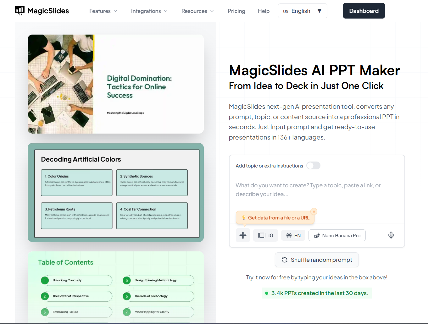 MagicSlides.app, an AI-powered presentation maker tool, helps by converting your notes, outlines, or key points into a well-structured presentation, instantly. Here, you do not have to worry about messing up your slide. Everything is done by MagicSlides.