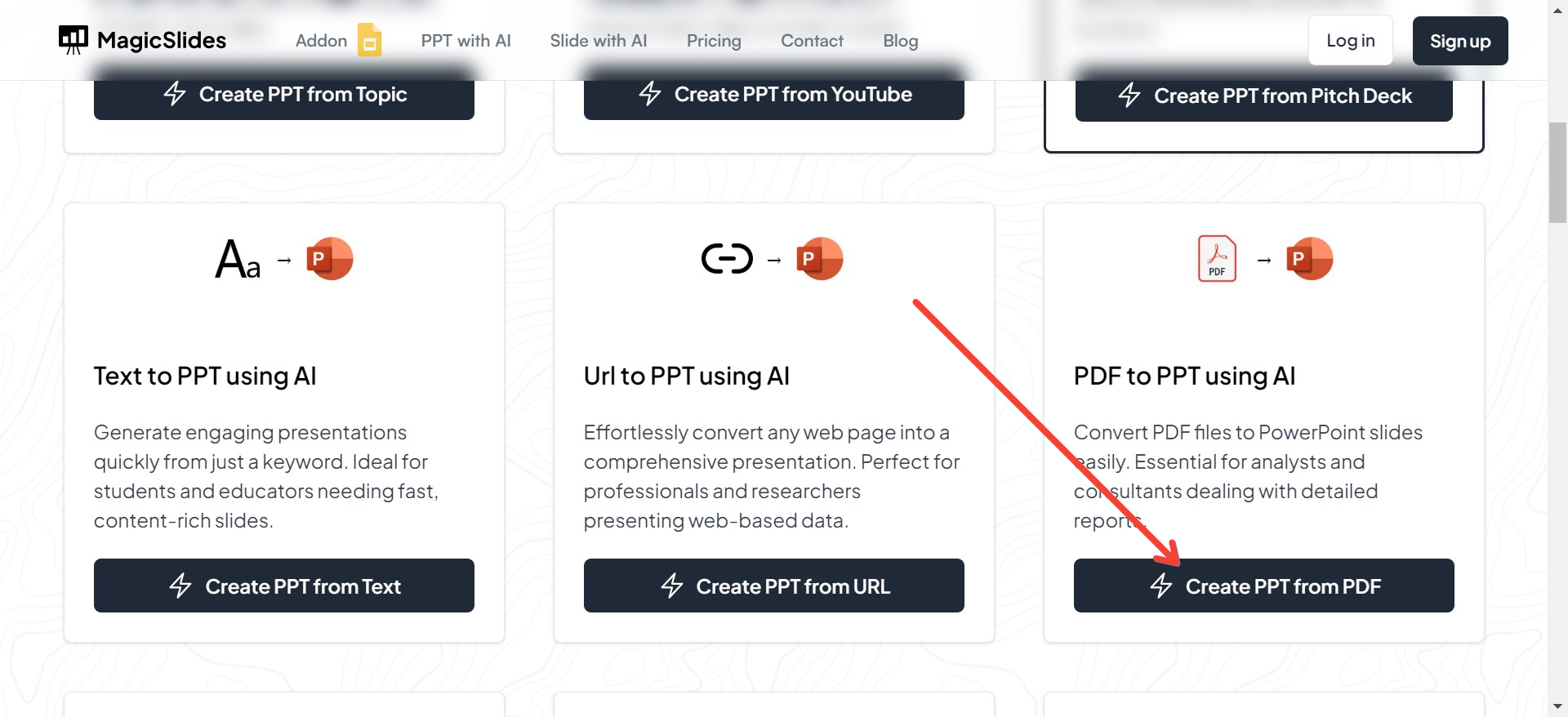 - Select the Tool for PDF to PPT Conversion: Within the ‘PPT with AI’ section, look for the tool specifically designed for converting PDFs to PowerPoint presentations. Click on this tool to proceed.