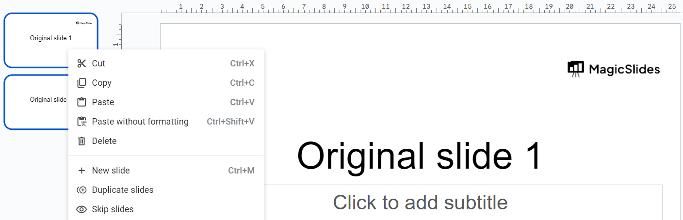 To copy multiple slides in Google Slides, use the Slide Sorter view to select and drag the desired slides. Right-click, choose "Copy," then paste into a new presentation. Adjust formatting and order as needed. Refer to the latest Google Slides instructions for any interface changes. Here are the steps: