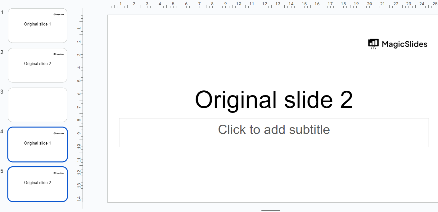 Step 5: Adjust Slide Order (if necessary): After pasting the slides, you can rearrange them in the new presentation if needed.