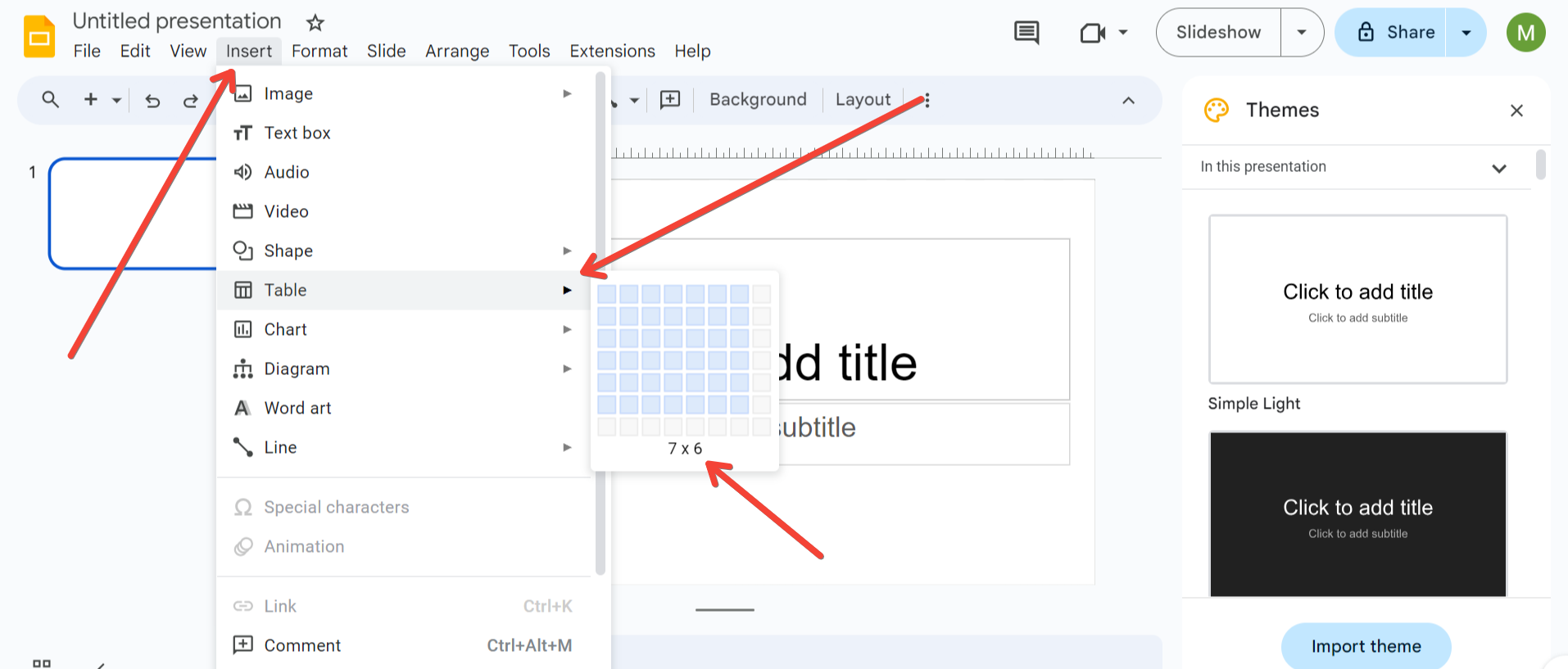 - Themes: Apply a theme from Google Slides for a consistent look across all slides.