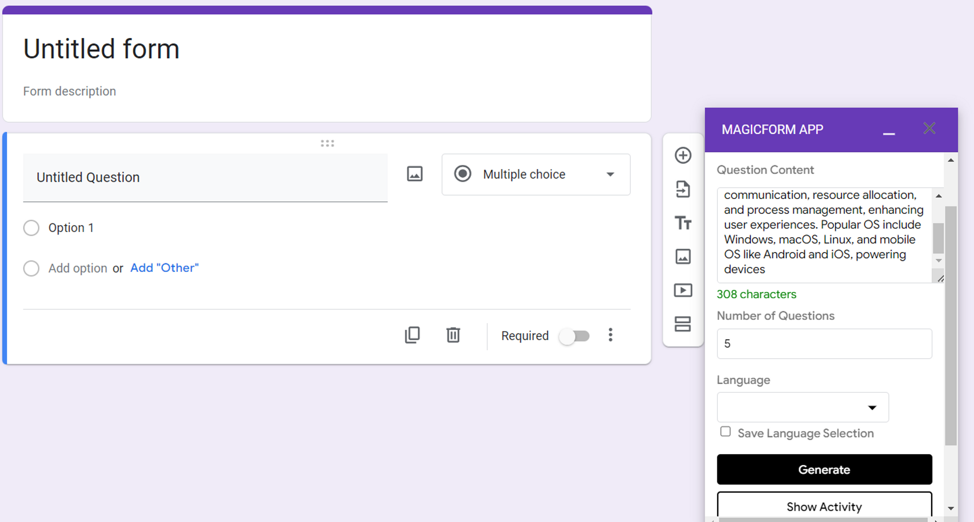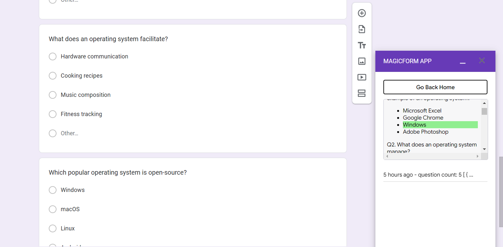 Seamless Integration: MagicForm seamlessly integrates with Google Forms, a popular platform for creating surveys and quizzes. Once installed, it appears in the extensions tab, ready to be utilized.