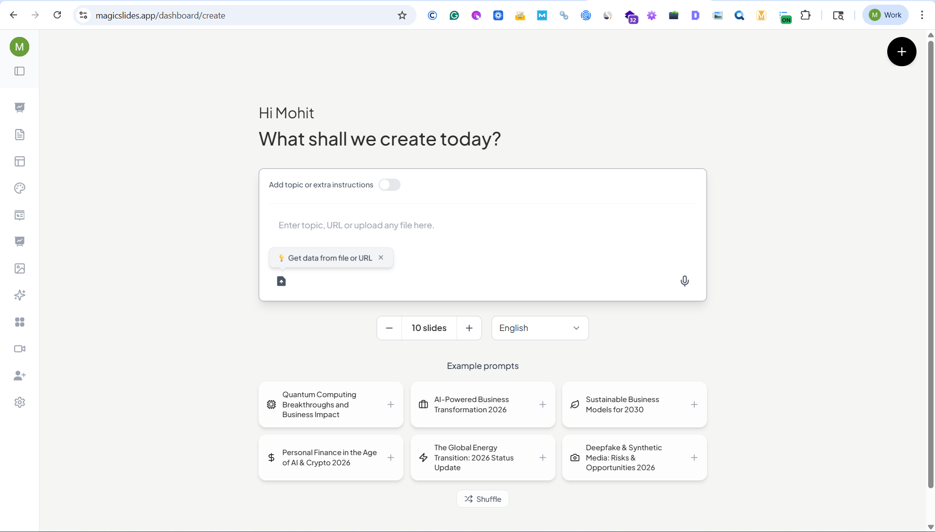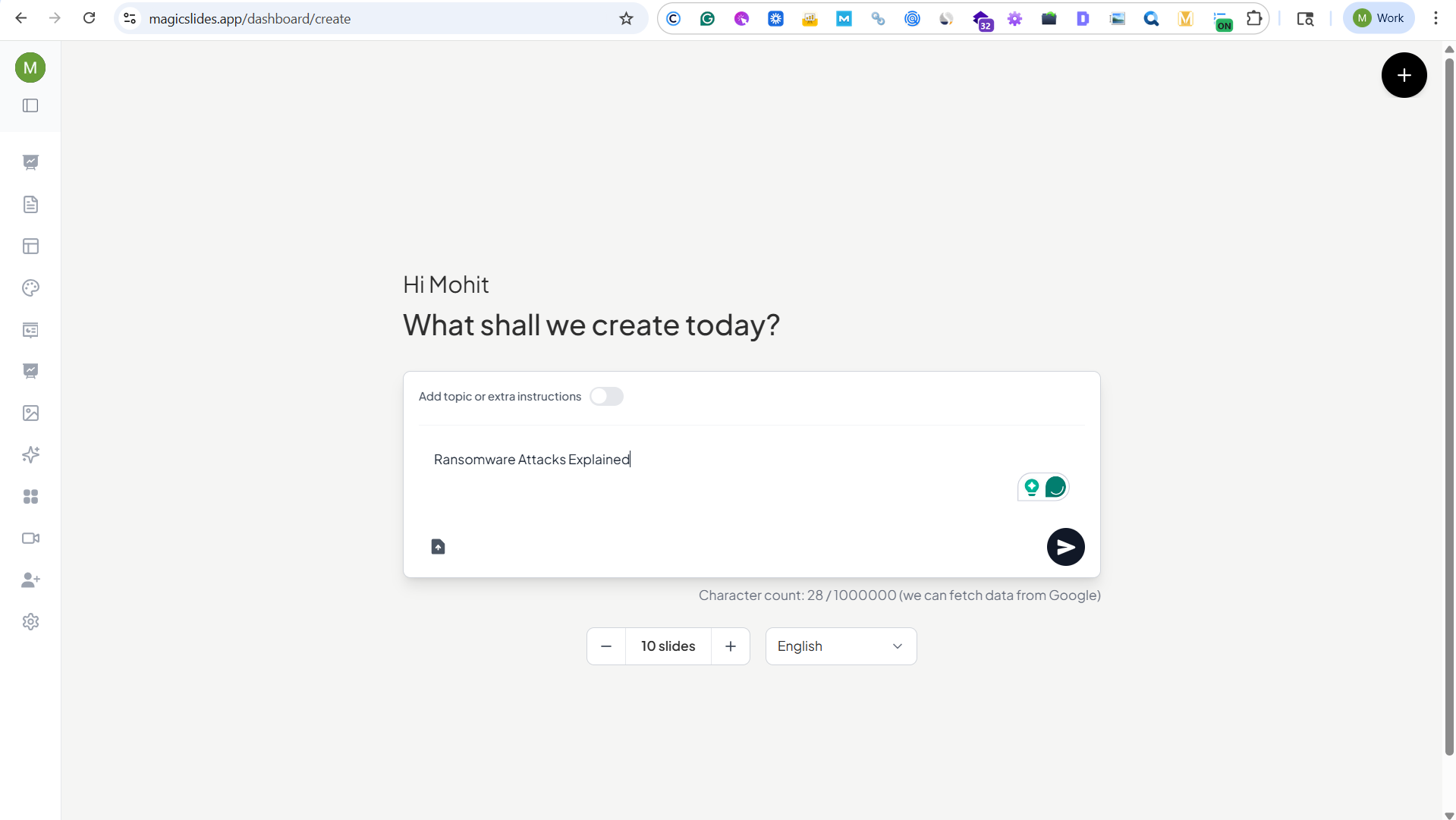 Instead of spending hours designing slides, researching structure, and formatting content, you can use MagicSlides AI to automatically generate a complete presentation in seconds.