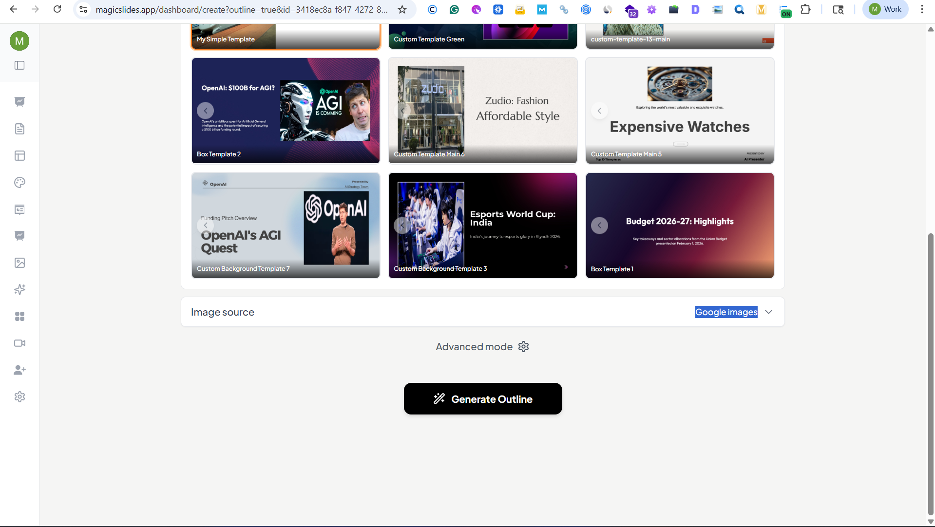 Step 3. Choose Template, Image source, and check Advanced mode, if required, and click on Generate Outline.