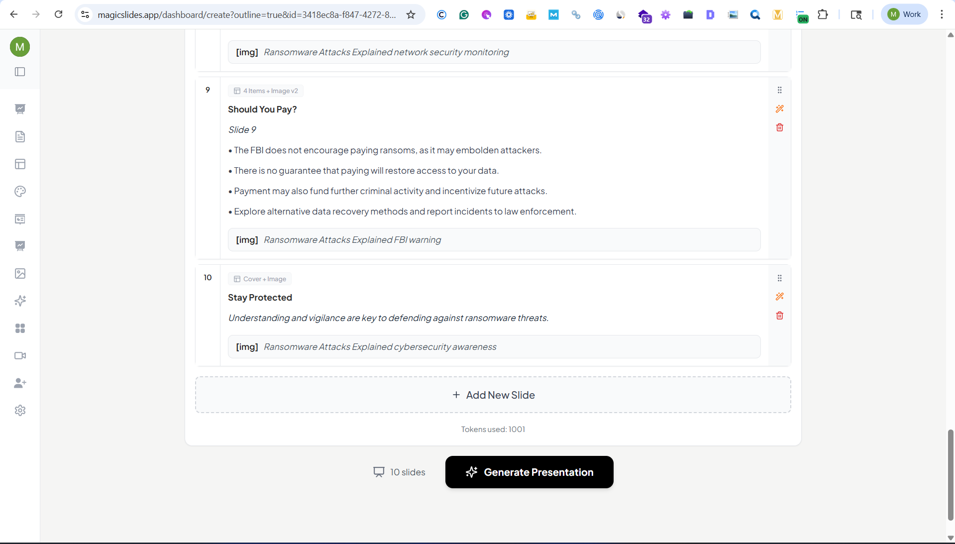 In just a few seconds, you'll have a fully structured cybersecurity presentation ready to present.