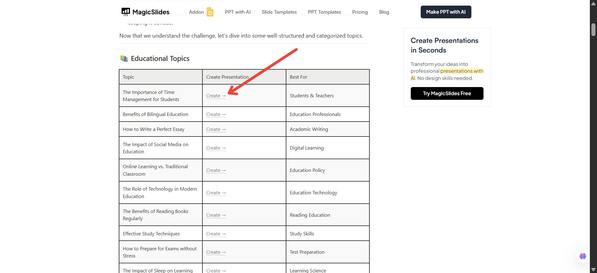 Then, instead of manually creating slides, you can use MagicSlides AI PPT Maker to instantly convert any topic into a structured presentation.