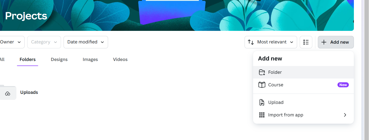 Move your designs into this folder by dragging and dropping them or using the “Add to Folder” option available in the design’s menu.