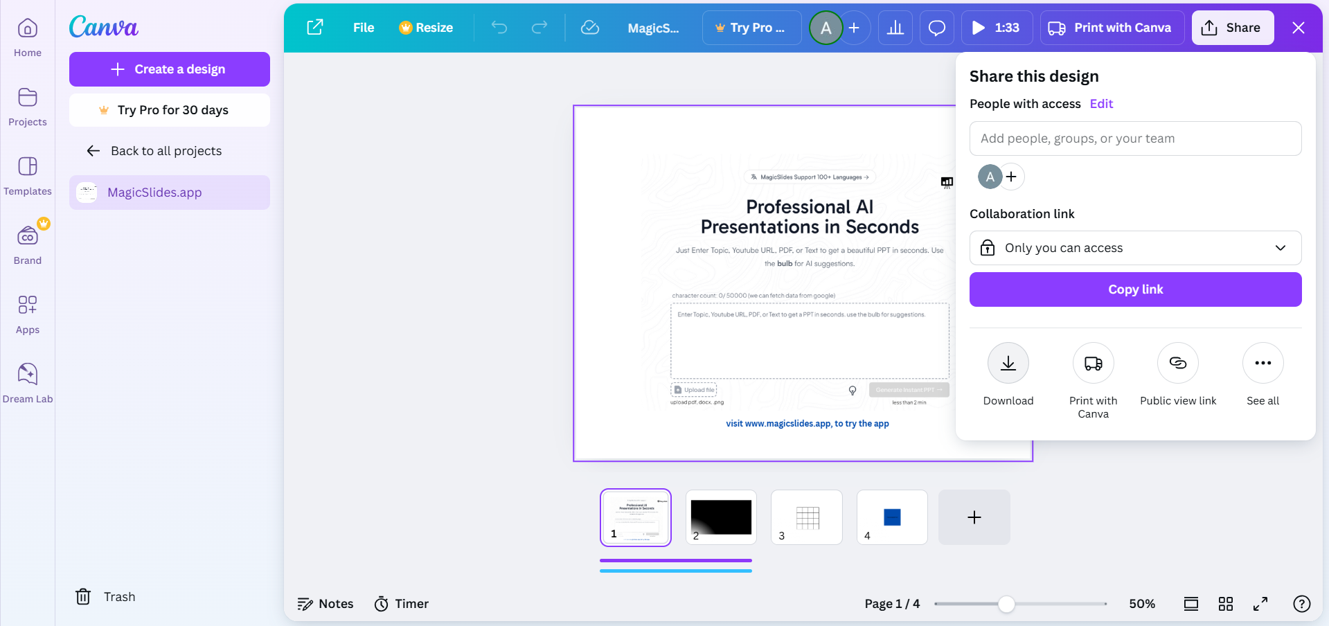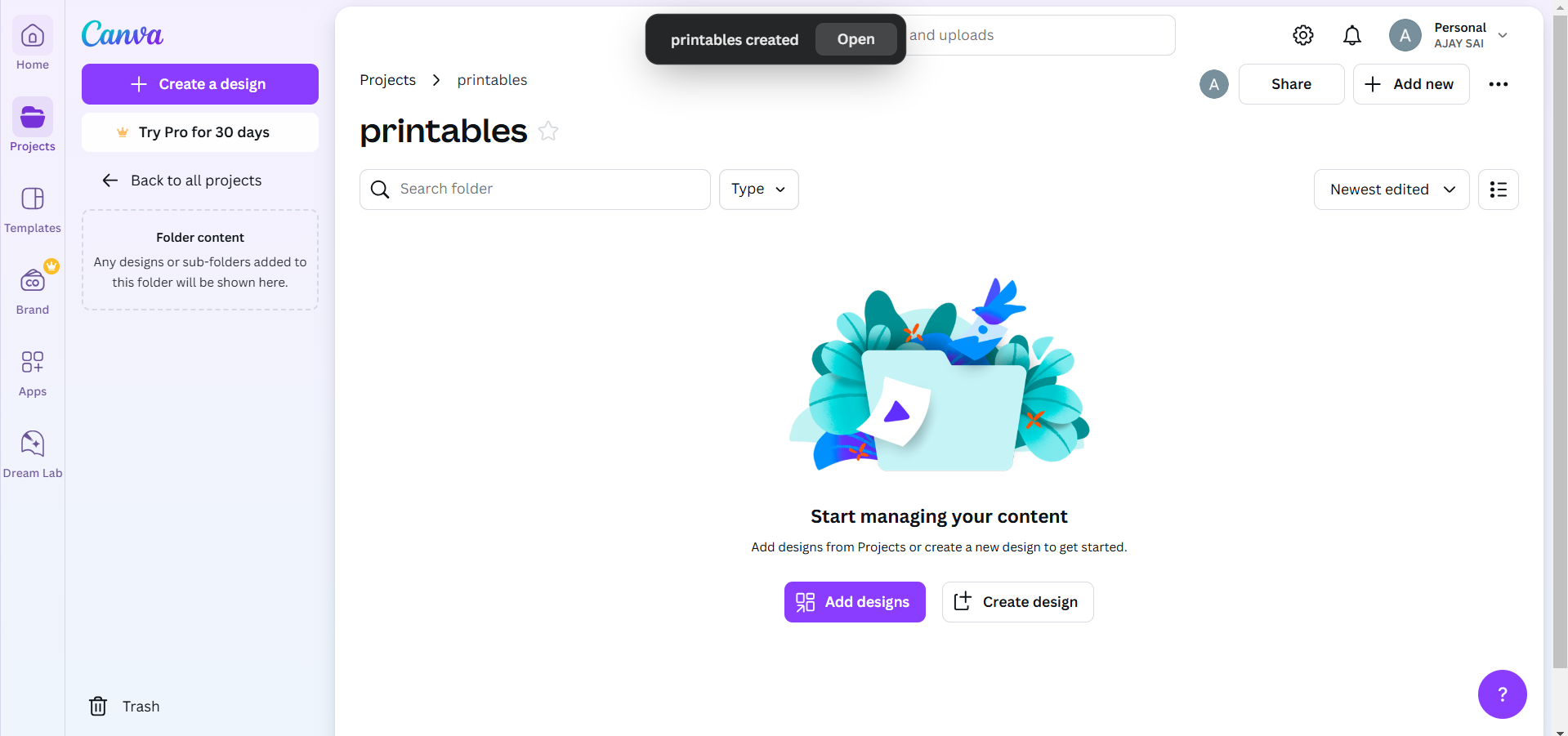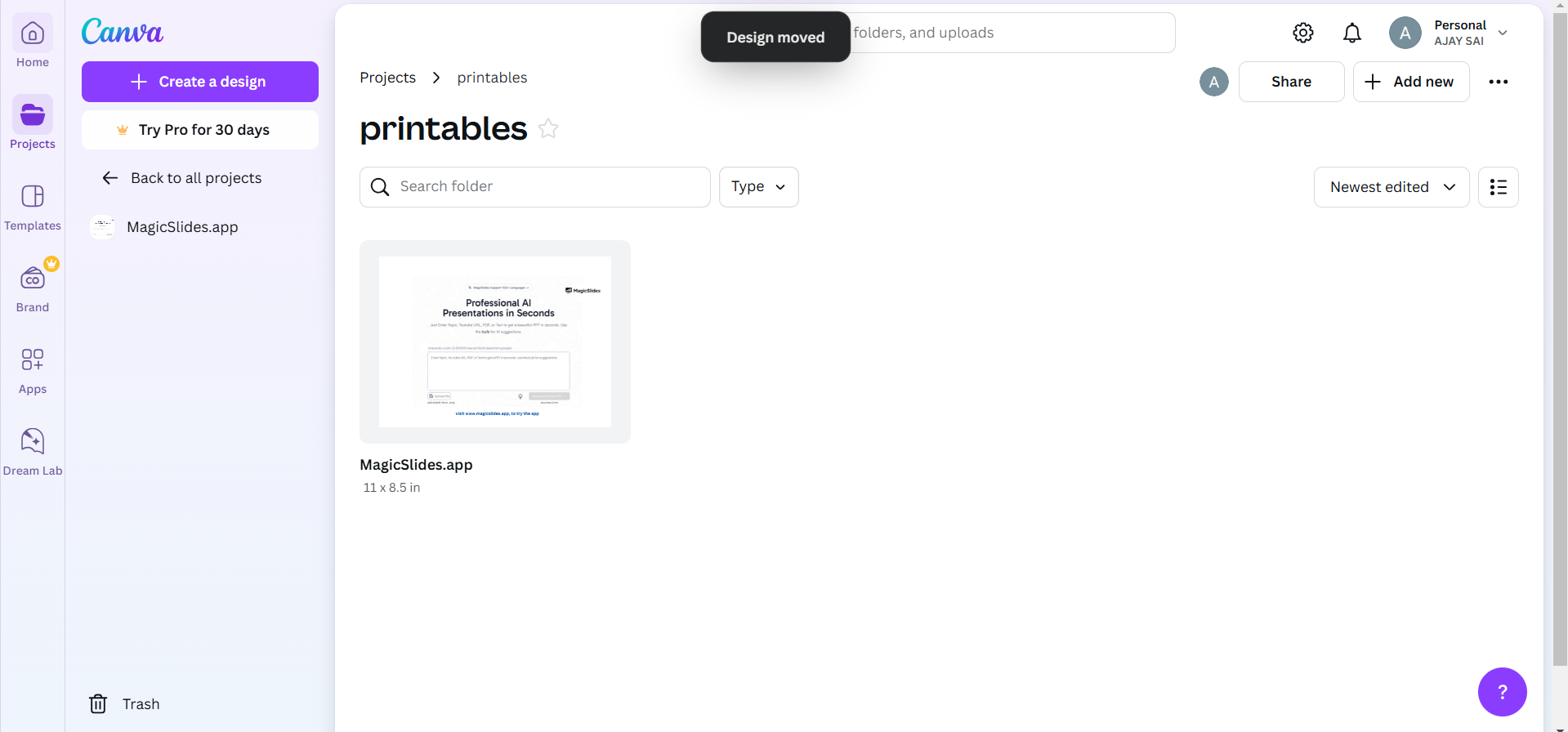 By organizing and downloading designs from Canva folders, you can easily print them to meet your needs!