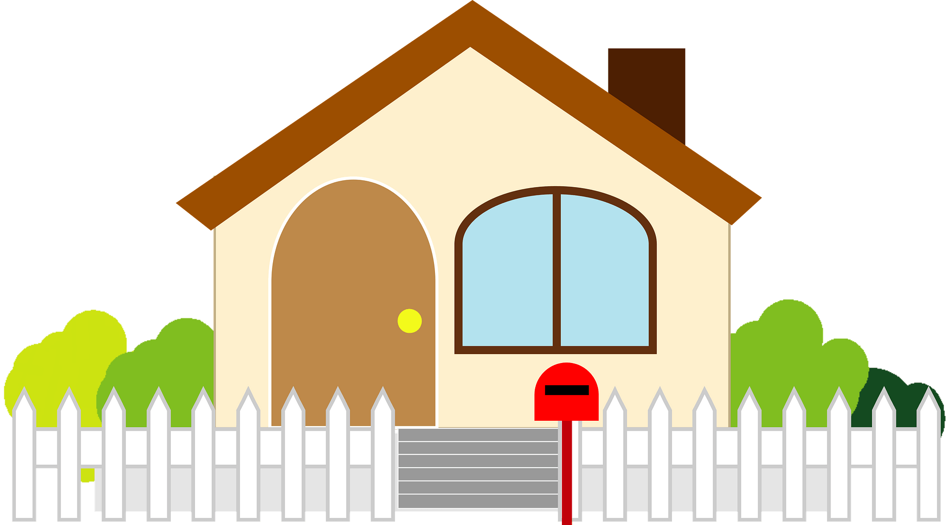 - Cartoon house with picket fence and mailbox