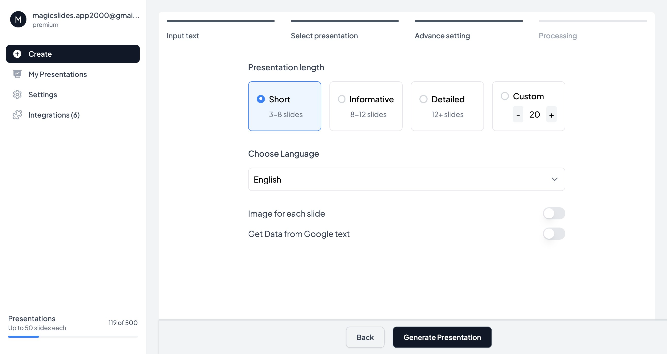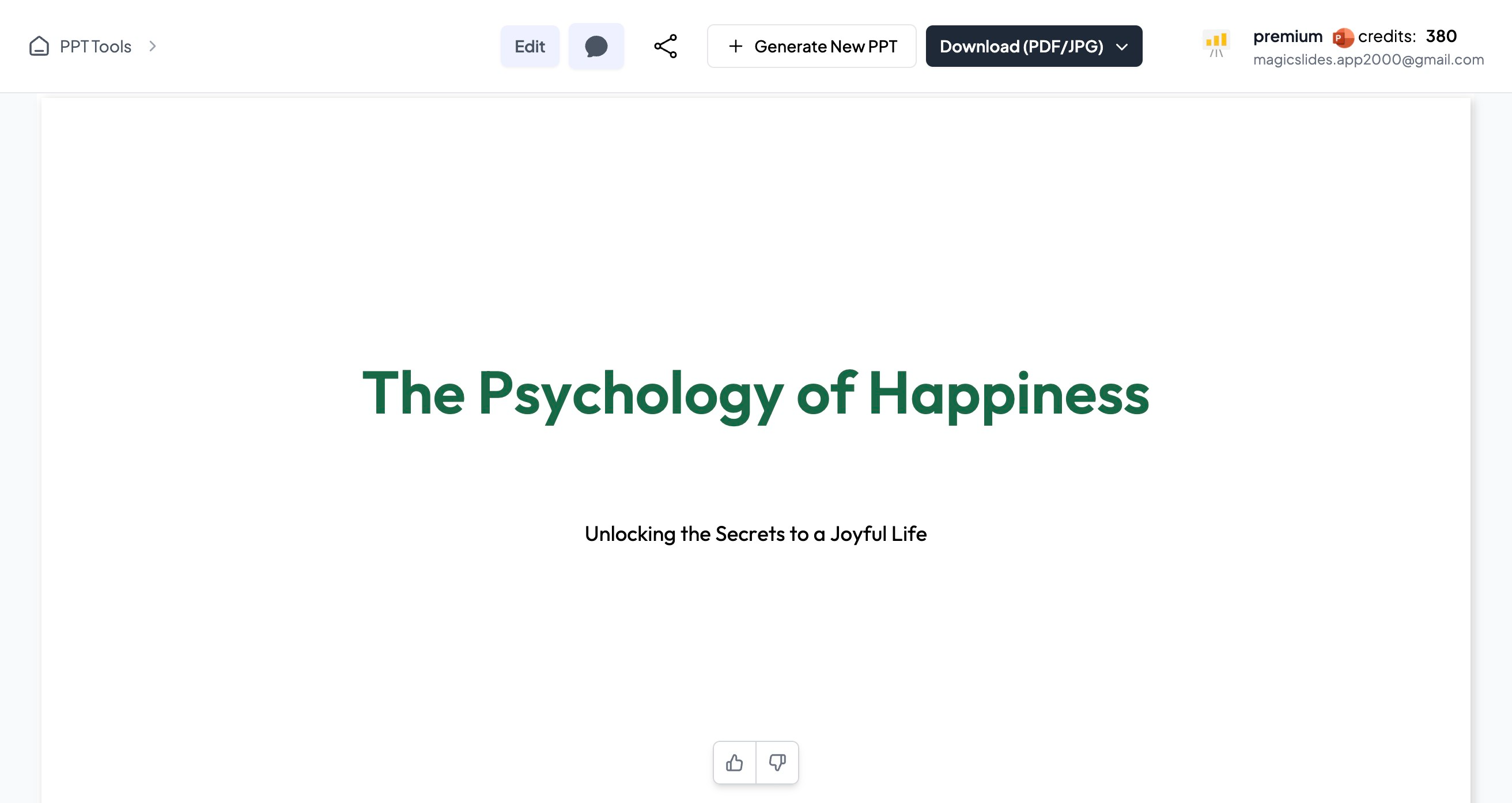 - Click Generate PPT (you can sign in with google in 1 click if not already)