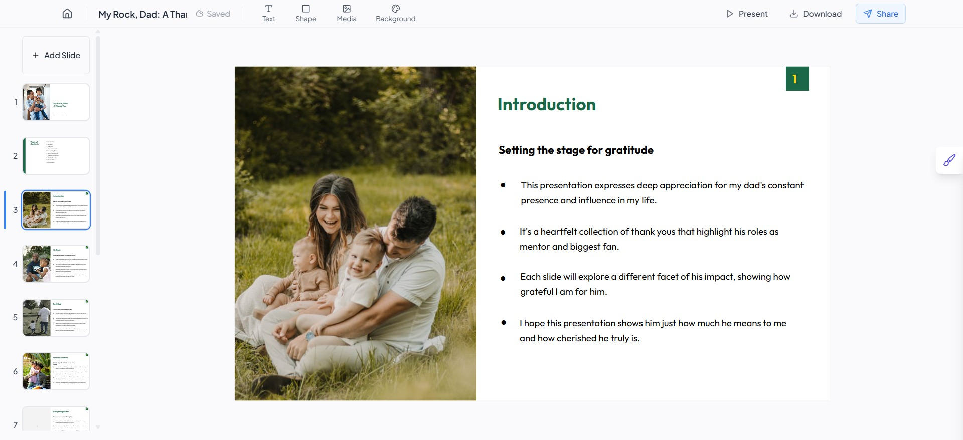 Father’s Day is about connection, appreciation, and love. Whether you choose a thoughtful quote, a handwritten card, or go the extra mile with a personalized presentation, the effort speaks volumes. And with tools like MagicSlides, you don’t need design skills to make it meaningful, just your words and a little heart.