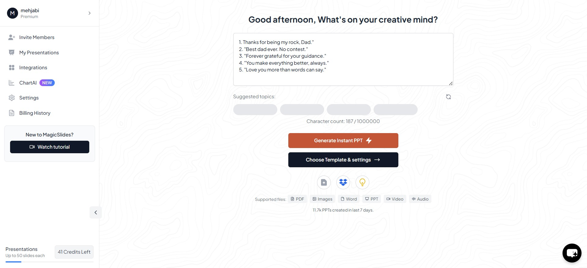 In this blog, we’ve curated 45+ meaningful Father’s Day quotes, ranging from emotional to funny, that you can use in messages, speeches, or even visual presentations. And if you’re thinking, “I wish I could turn these into a slideshow or gift effortlessly,” we’ve got good news: tools like MagicSlides let you do just that, automatically turning text into beautiful presentations in seconds.