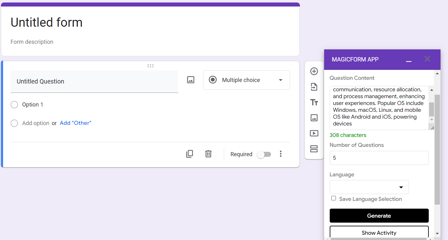 Gone are the days of manually crafting quiz questions one by one. MagicForm, in just a few simple steps, transforms the way educators design assessments. Here's a glimpse of how it works: