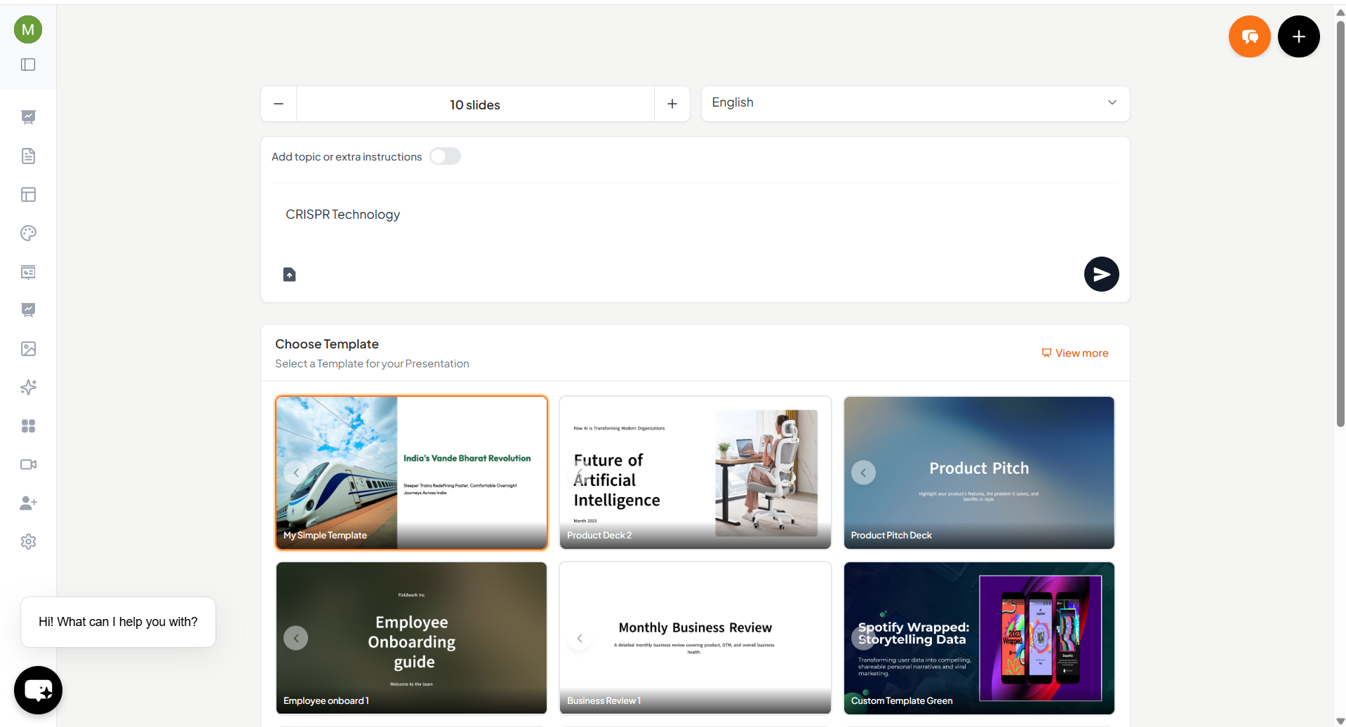 - Select the number of slides and preferred language