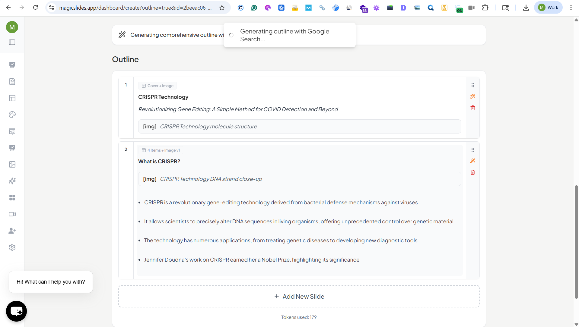With MagicSlides, you can turn any genetics topic into a complete presentation in just a few clicks. Instead of starting from scratch, simply enter your topic such as “CRISPR Technology” or “Genetic Disorders” and let the tool generate a structured outline and ready-to-use slides.