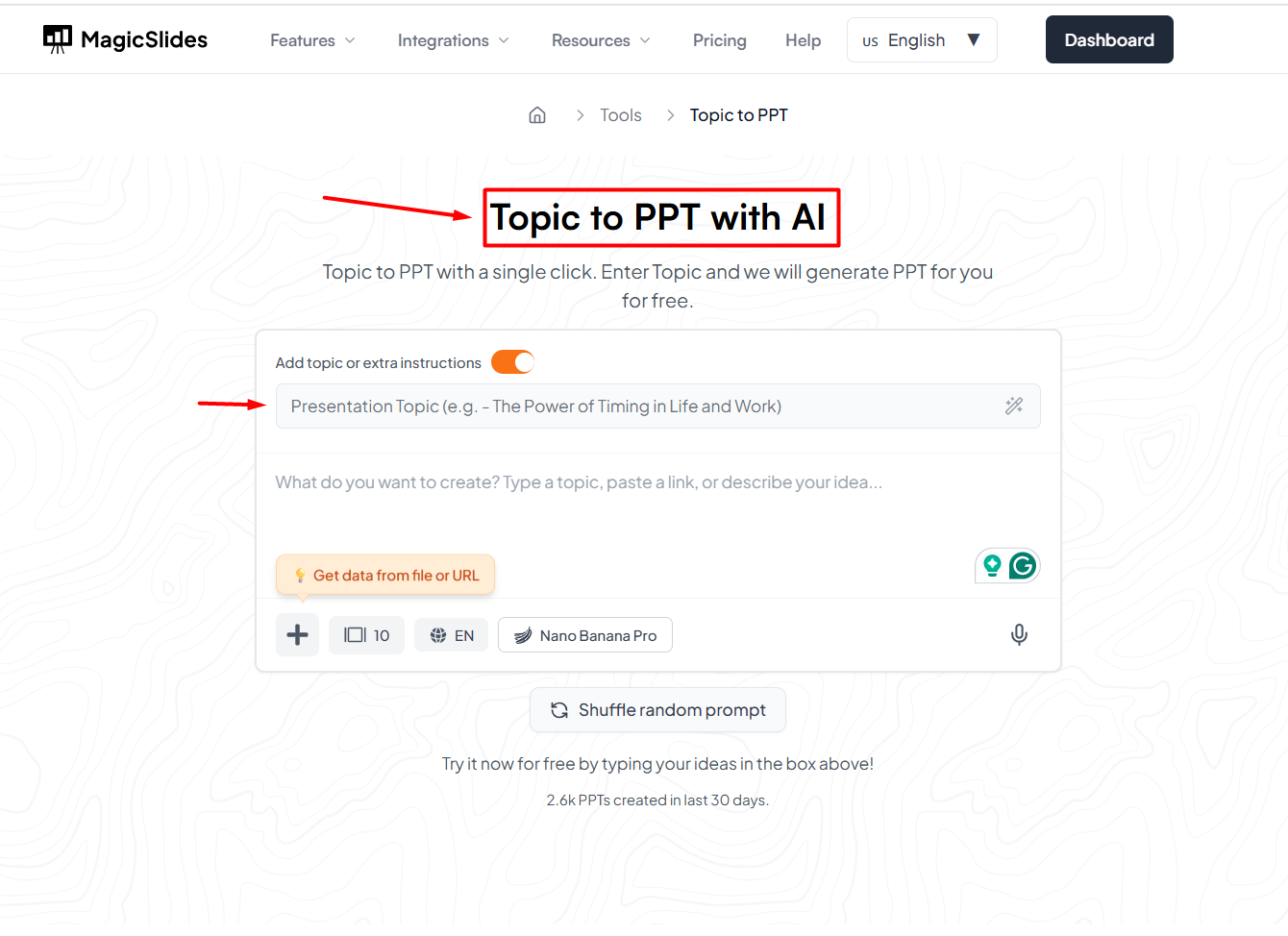 Step 1. Open MagicSlides’ Topic to PPT Converter tool.