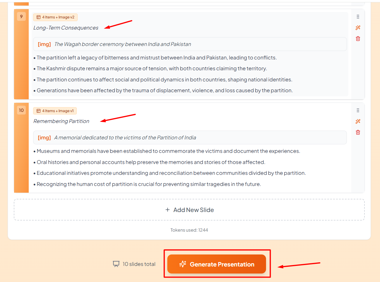 Step 4. Check the generated outline once you are ready to proceed click on Generate Presentation.