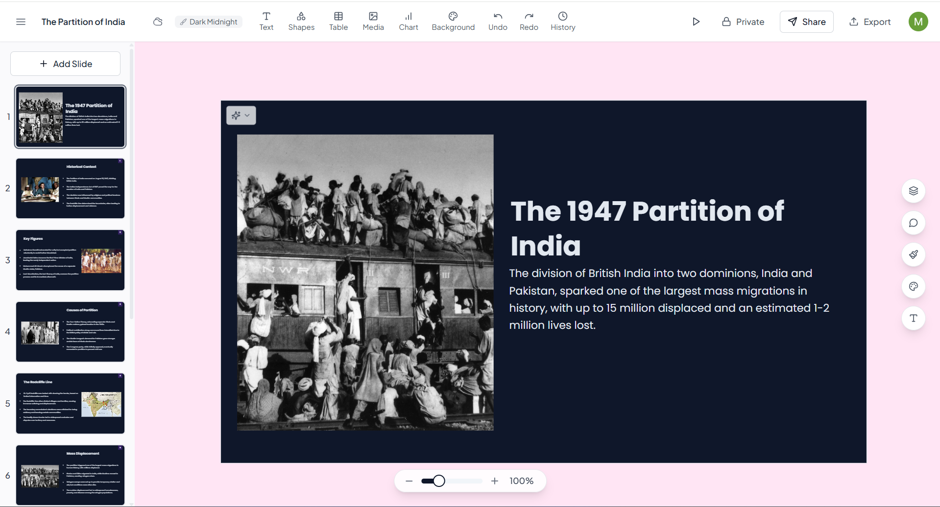 Step 5. Within a few seconds, your history topic presentation will be ready.