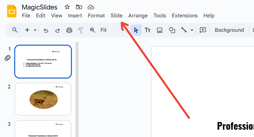 If you are starting from scratch, create a new presentation by clicking the “Blank” template on the Google Slides homepage.