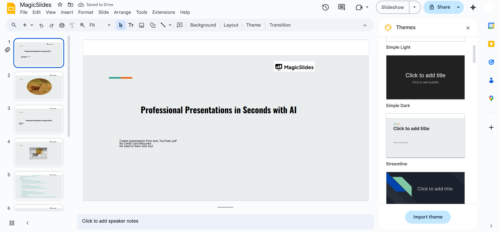 Applying a theme to your Google Slides presentation simplifies the design process and enhances the overall look.