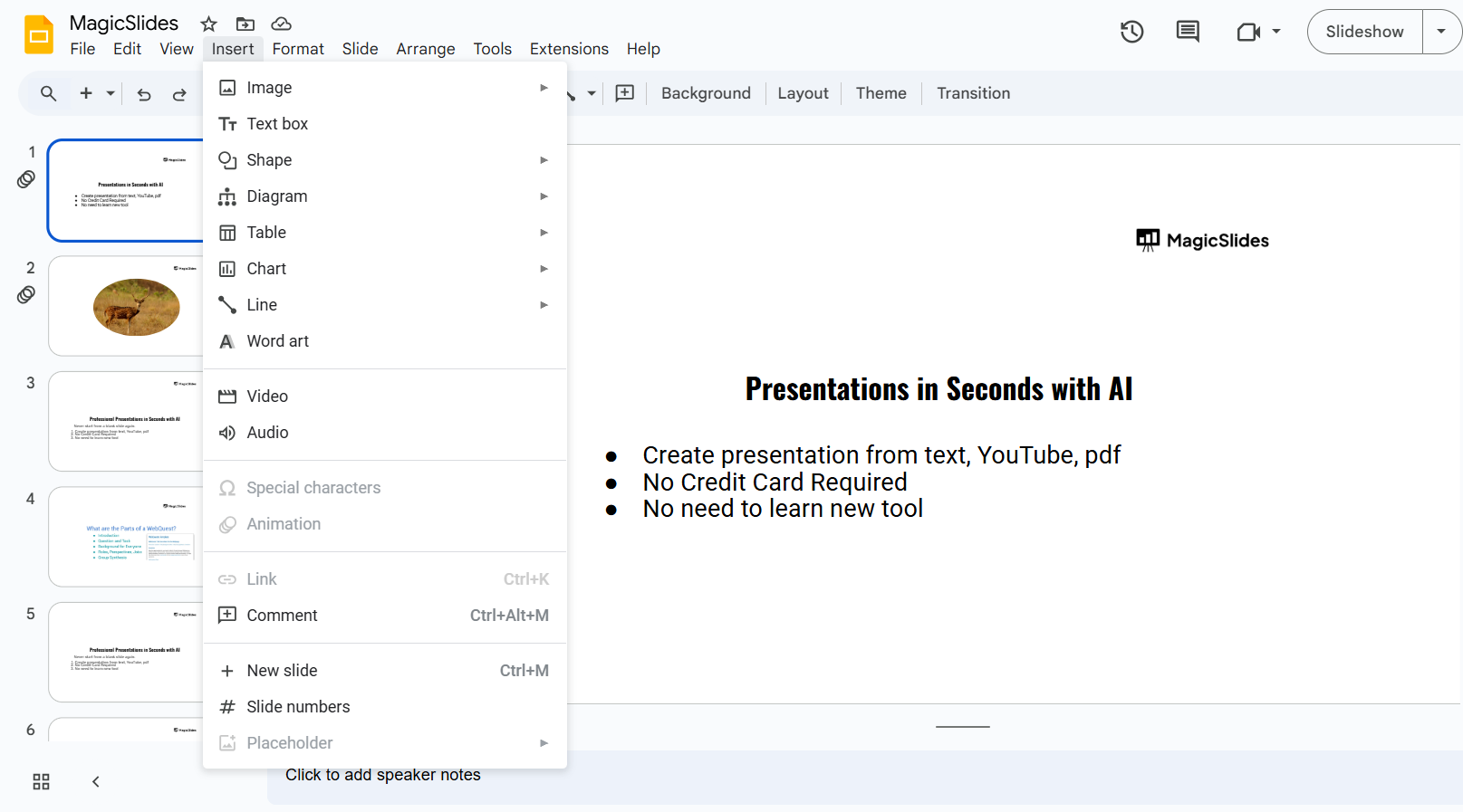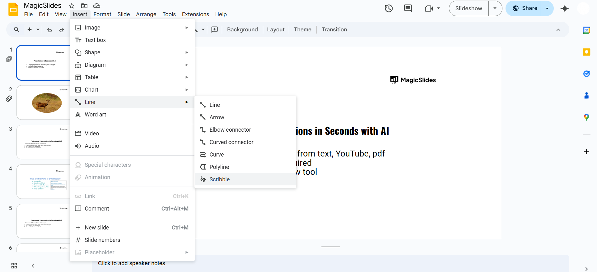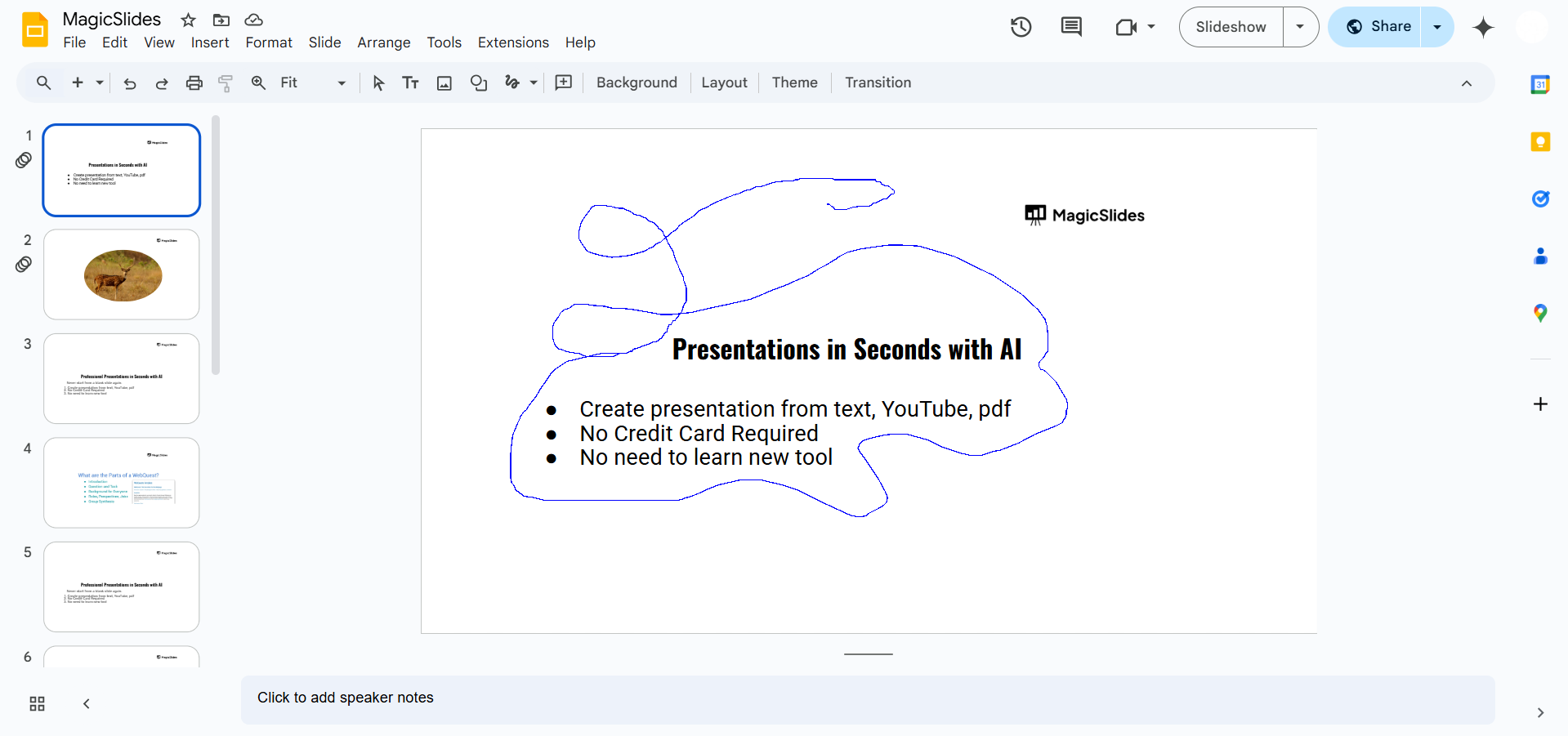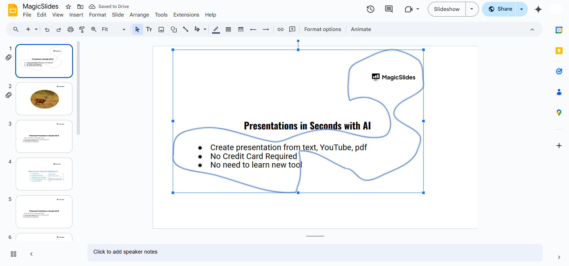 Drawing irregular shapes in Google Slides can be a bit tricky, but MagicSlides.app makes it easier! Whether you need custom shapes or a fully-designed presentation, MagicSlides.app will generate professional slides tailored to your needs in just a few clicks.