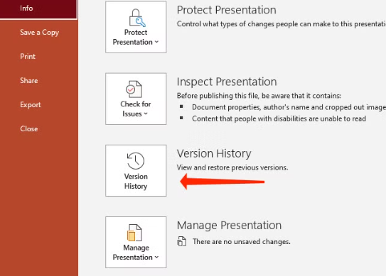 If the undo option doesn’t work, check if your presentation is saved in OneDrive with Version History enabled.