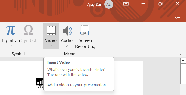 The video will appear on your slide, ready to be resized and moved.