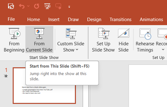 Click "Slide Show" > "From Current Slide" to preview how the video plays during the presentation.