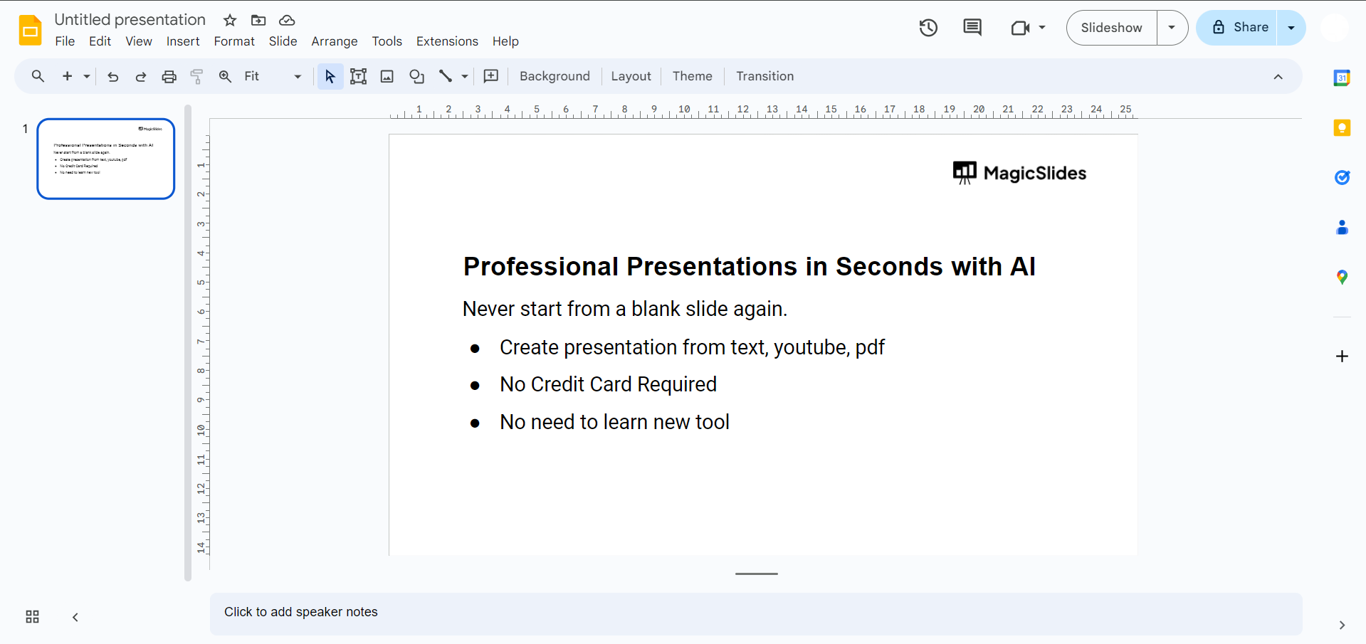 Begin by opening the Google Slides presentation you're working on or create a new one if you haven't started yet.