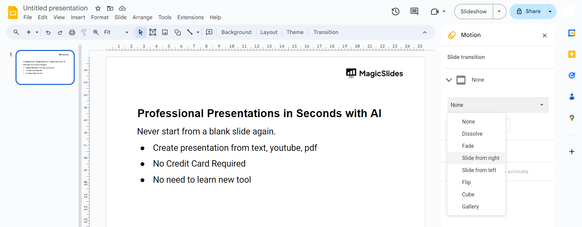 How do you do transitions on Google Slides